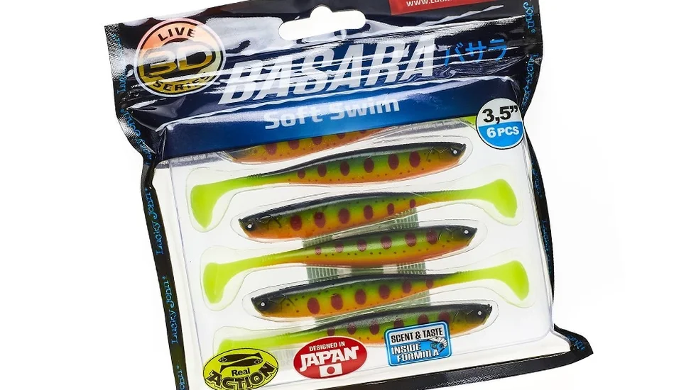 Прогониста, обтічна геометрія, потужна округла п'яточка на тонкому хвості - особливості представленої приманки. Вона замислювалася командою розробників Лакі Джон як натуралістична 3D-копія невеликої рибки - кормового об'єкта для зубастої щуки, судака або горбача-окуня. Модель має довжину 8,9 см, вага 3,4 гр. При проводці демонструє живу динамічну гру, п'ята створює сильні гідроакустичні вібрації. Крім того, для більшої ефективності фахівці Lucky John просочили еластичне тіло Basara Soft Swim ще й атрактантом з насиченим апетитним ароматом. Смачний запах креветки розтермосить навіть пасивних особин. Цей віброхвіст добре працює з класичними джиг-голівками, двійниками. Рекомендована маса вантажів від 7 гр. Можна використовувати одинарники або офсетники.
