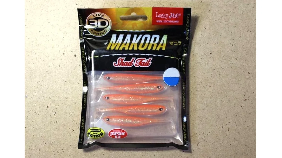Фігурне рифлення, яке описує зябра, луску, очі та інші деталі робить представлену "силіконку" більш натуралістичною. Геометрія моделей лінійки Shad Tail сімейства Макора в точності копіює прогонисту вузькотілу рибку. Потужна п’яточка на витягнутому хвості відповідає за динамічні коливання на будь-який анімації. Усередині тіла у напівпрозорих моделей Lucky John сімейства Makora Shad Tail захована блискуча трубчаста вставка з фольги, що створює природні відблиски. Особливо привабливим буде віброхвіст в прозорій воді. Габарити його 10 см, маса 5,2 гр. Розраховані розміри приманки на полювання за зубастою щукою, судаком і іншими великими хижаками. Для монтажу підійде одинарник, офсетник і двійник. Рекомендовані дані віброхвости творцями в першу чергу для джига з вантажем від 8 гр і вище.