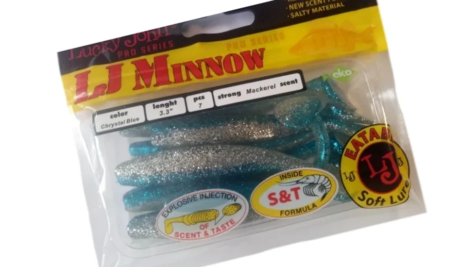 Пластична жива дражлива гра - "родзинка" моделі Minnow 84. Гарну рухливість приманки забезпечує матеріал з підвищеною м'якістю. А за інтенсивні коливання і потужні збурення середовища відповідає велика п'ята. Експерти Лакі Джон включили до складу силікону солі, а поверхню тіла приманки обробили маслянистим атрактантом. Смако-ароматичні властивості Lucky John Minnow 84 збільшують її привабливість навіть для пасивної, вибагливої риби. Довжина моделі 8,4 см, вага 5,3 гр. Віброхвіст приверне судака, щуку, окуня. Підійде для оснащення одинарником, двійником або офсетником. Може працювати з джиг-голівкою, а на міляках і без додаткового навантаження. Розробники відзначають міцність матеріалу, що дозволить приманці пережити не одне клювання.