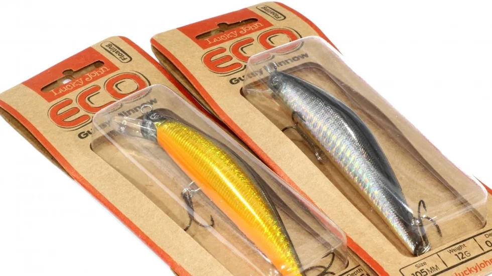 Eco Gutsy Minnow від фірми Lucky John - це класичний воблер-міноу, що випускається виробником в двох розмірах: 9 і 10,5 сантиметрів. Воблери даного типу є ідеальними приманками для полювання за великою щукою в літній період при лові на невеликих акваторіях. Команда експертів при розробці серії Gutsy Minnow врахувала цей факт і випустила воблери в найбільш популярних кольорах для лову щуки. Завдяки наявності системи далекого закидання, приманки даної серії можна закинути на далекі дистанції. Воблер також буде актуальний для лову жереха і судака в нічний час. Дана серія доповнює нову лінійку Lucky John ECO Series, анонсовану брендом до літнього спінінгового сезону 2016 року. Воблери ECO розроблялися як доступні за ціною приманки, мають при цьому високу якість. При розробці серії також був зроблений натиск на екологію - використання пластику в упаковці приманок LJ ECO зведено до мінімуму, а основний матеріал, який використовується для упаковки - екологічно чистий картон.