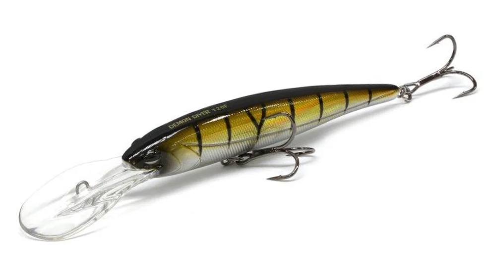 Для лову великого хижака, що мешкає на достатньо великій глибині, фахівці фірми Лаки Джон створили лінійку воблерів Original Demon Diver. Це міноу, які оснащені збільшеною лопаткою. Вона забезпечує занурення на 7 метрів. Щоб приманку можна було доставити в перспективну точку в водоймі, всередині корпусу прихована система далекого закидання. В якості проводки можна застосувати просту рівномірку або ж чергування потягувань і пауз. Такий спосіб отримав назву Стоп-енд-гоу. На паузах цей міноу буде підніматися вище свого робочого горизонту. Крім гри і реалістичного дизайну, воблер буде заманювати хижака ще й звуковими ефектами. Довжина Original Demon Diver дорівнює 12 см при масі в 21 гр. Дизайн зроблений дуже натуралістично. На корпус нанесено рифлення у вигляді луски, бічної лінії, очей.