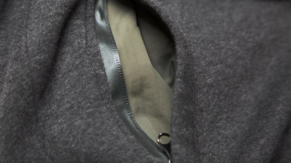 Теплий реглан, штани з водостійкими кишенями та блискавкою на них.