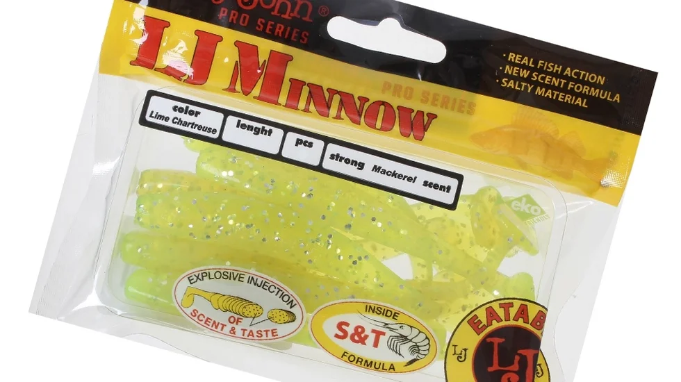 Поєднання підвищеної м'якості, пружності і міцності - особливість матеріалу Minnow. У сукупності з прогонистою геометрією, великою широкою пяточкою це забезпечує плавну живу дратуючу гру. Завдяки якості силікону, віброхвіст переживе не одне клювання. Для більшої привабливості він містить солі. Навіть після клювання риба не поспішає випльовувати смачне "частування". Також експерти Lucky John нанесли на поверхню Minnow маслянистий атрактант для апетитного насиченого запаху. У довжину габарити представленої моделі 14 см, а маса 19,25 гр. На мілководді важкий віброхвіст можна використовувати без додаткового навантаження. Підійде модель для оснащення класичною джиговою голівкою з одинарником, офсетником або двійником. Головною потенційною здобиччю можна вважати трофейну зубасту щуку.
