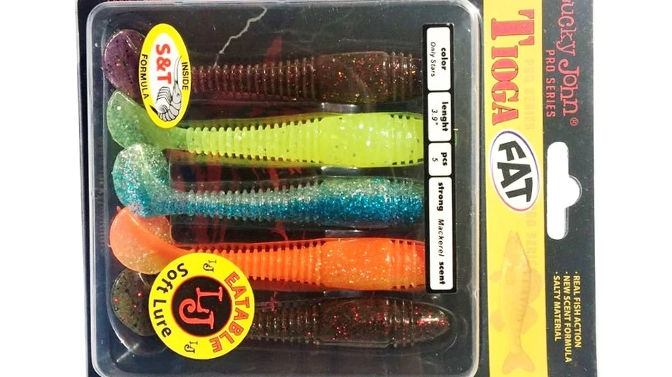 Хороша рухливість і жива інтенсивна гра - особливості моделі Tioga. Для цього експерти Лакі Джон наділили модель витягнутим з кільцевим рифленням тілом хробака і округлою п'ятою віброхвоста на плоскій тонкій підставі. Для більшої привабливості матеріал приманки містить склад Scent & Taste. Тому у воді Lucky John Tioga залишає за собою ароматний слід. Після клювання ця модель здається хижакові смачною, що змушує його довше тримати таке "частування" в пащі. Габарити моделі складають 7,5 см, а маса 2,5 гр. Приманку можна оснащувати одним, подвійним або офсетним гачком. Добре працює віброхвіст з джиг-голівкою або на рознесених монтажах. Розробники рекомендують довантаження від 3 гр до 10 гр, однак при полюванні на судака допустимо і більшу вагу. Крім ікластого хижака, серія сподобається і щуці, і всюдисущому окуню.