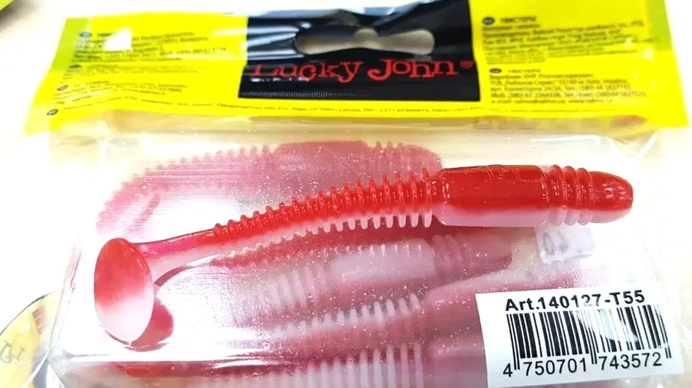 Хороша рухливість і жива інтенсивна гра - особливості моделі Tioga. Для цього експерти Лакі Джон наділили модель витягнутим з кільцевим рифленням тілом хробака і округлою п'ятою віброхвоста на плоскій тонкій підставі. Для більшої привабливості матеріал приманки містить склад Scent & Taste. Тому у воді Lucky John Tioga залишає за собою ароматний слід. Після клювання ця модель здається хижакові смачною, що змушує його довше тримати таке "частування" в пащі. Габарити моделі складають 7,5 см, а маса 2,5 гр. Приманку можна оснащувати одним, подвійним або офсетним гачком. Добре працює віброхвіст з джиг-голівкою або на рознесених монтажах. Розробники рекомендують довантаження від 3 гр до 10 гр, однак при полюванні на судака допустимо і більшу вагу. Крім ікластого хижака, серія сподобається і щуці, і всюдисущому окуню.