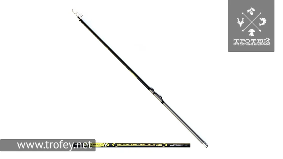 Телескопическое удилище среднего строя из композита. Верхнее колено имеет дополнительное разгрузочное кольцо, бланк укомплектован кольцами со вставками SIC с креплением на одной ножке.