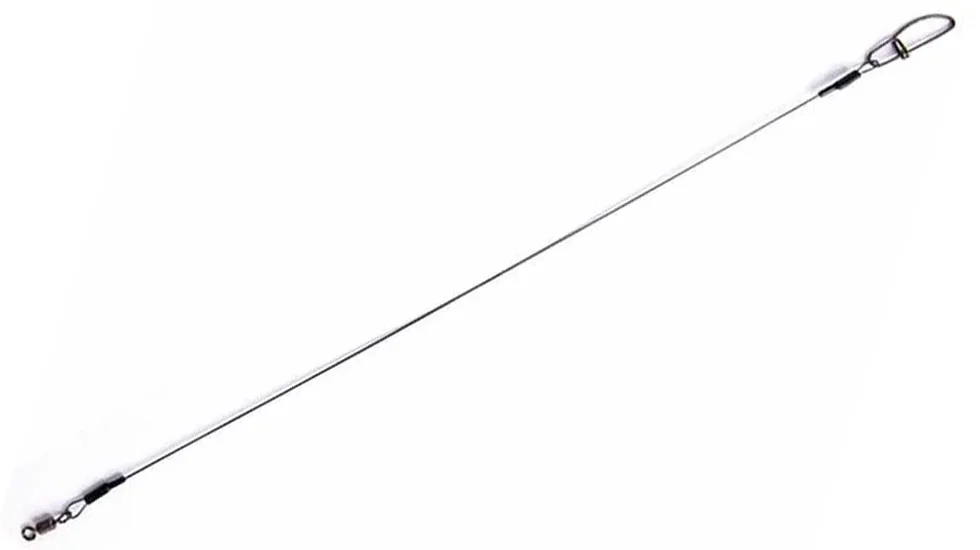 Повідці плетіння 7х7, виготовлені з легованої сталі фірмою AMERICAN FISHING WIRE і вироблені в США. Вони складаються з 49 переплетених між собою сталевих мікродротів. Ці повідці дуже м'які і еластичні - НЕ жорсткіше, ніж звичайна монофільна волосінь того ж діаметру. Повідці дуже стійкі до всіляких деформацій і не втрачають своїх властивостей після потужних навантажень і «обов'язкових» перегинів в пащі великого хижака. Після виведення крупної риби вони не перекручуються і залишаються завжди прямими, тобто не мають залишкової «пам'яті». Наявність міцного покриття з нейлону підвищують їх стійкість до механічних пошкоджень, і приховує смак «заліза». Повідці укомплектовані високоякісними японськими вертлюжками і застібками, з їх кріпленням за допомогою обтискних трубочок. Підбірка кріпильної арматури здійснена відповідно до розривного навантаження на повідковий матеріал.