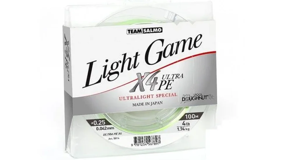 Високоякісний РЕ шнур спортивного класу, сплетений з 4-х пасм. Шнур спеціально розроблений для лову лайтовими і ультралайтовими снастями. Виготовляється діаметром від 0,042 до 0, 064мм, з розривним навантаженням 4-6 lb. Поставляється в індивідуальній упаковці в розмотуванні по 100 м. Шнур воготовляється тільки в Японії.