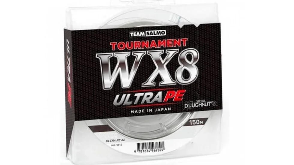 Плетений шнур TEAM SALMO TOURNAMENT професійний, що має надщільне плетіння з 8 пасм, що забезпечує йому найвищу м'якість та міцність. Виготовляється діаметром від 0,134 до 0,194 мм, з розривним навантаженням 17 - 30 lb. Поставляється в індивідуальній упаковці розмотуванні за 150м. Шнур виготовляється тільки в Японії.