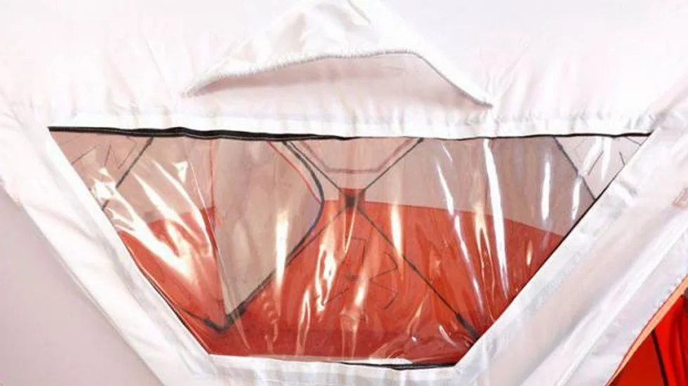 Напівавтоматичний намет на 2 місця каркасної конструкції. У зібраному вигляді має кубічну форму з опуклими назовні стінками. Обладнаний 2-ма окремими входами з міцними замками-блискавками. Міцний каркас зі скловолокна (фібергласа) діаметром 10 мм забезпечує надійне збереження кубічної форми в самий сильний вітер. Міцний, водостійкий (1000 мм) і термозберігаючий матеріал тенту (поліестер 210D з PU покриттям) забезпечує повний захист від вітру, снігу і дощу. Має регульовані вентиляційні вікна з вітровими клапанами. Два великих прозорих вікна забезпечують найвищу ступінь природного освітлення всередині неї. Зовні намету з 4-х сторін пришиті світловідбиваючі елементи безпеки. Для надійного закріплення на льоду у вітряну погоду в комплект входять 6 оцинкованих буравчиків і 4 відтягнення. При транспортуванні намет складається в міцну сумку-чохол, яку зручно переносити як рюкзак.